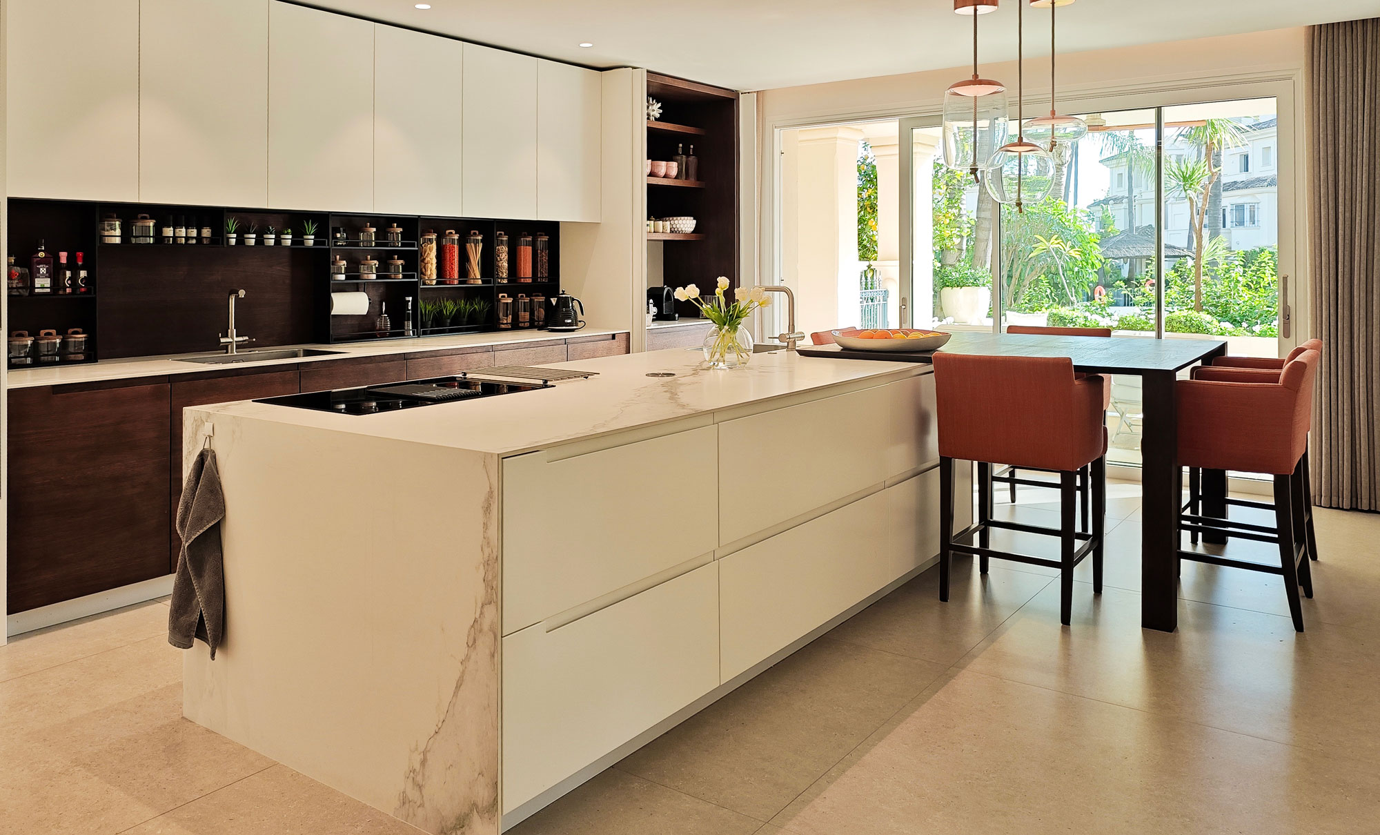 Para este proyecto en Las Alamandas, Marbella, colaboramos con Marja y su marido, Neil, en el diseño y la fabricación de un conjunto completo de mobiliario a medida: una nueva cocina, muebles de baño a medida y armarios personalizados.